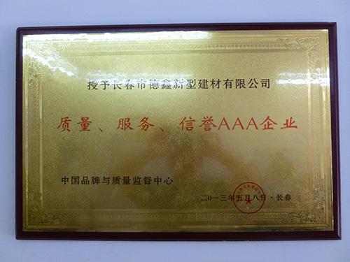 - 您的位置: 首頁(yè) > 關(guān)于德鑫 > 榮譽(yù)資質(zhì) > 質(zhì)量服務(wù)信譽(yù)AAA企業(yè)